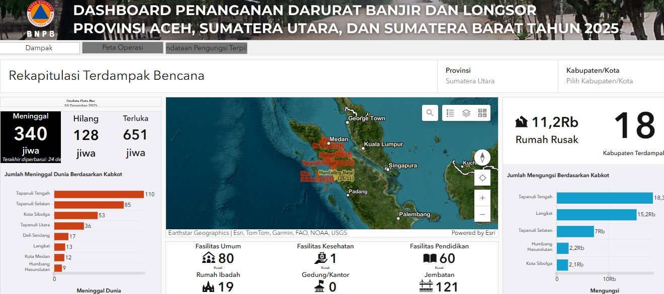 Foto Caption: Kerusakan fasilitas umum dan sekolah di Sumatera Utara tercatat meningkat tajam dalam laporan resmi BNPB. Screenshot BNPB