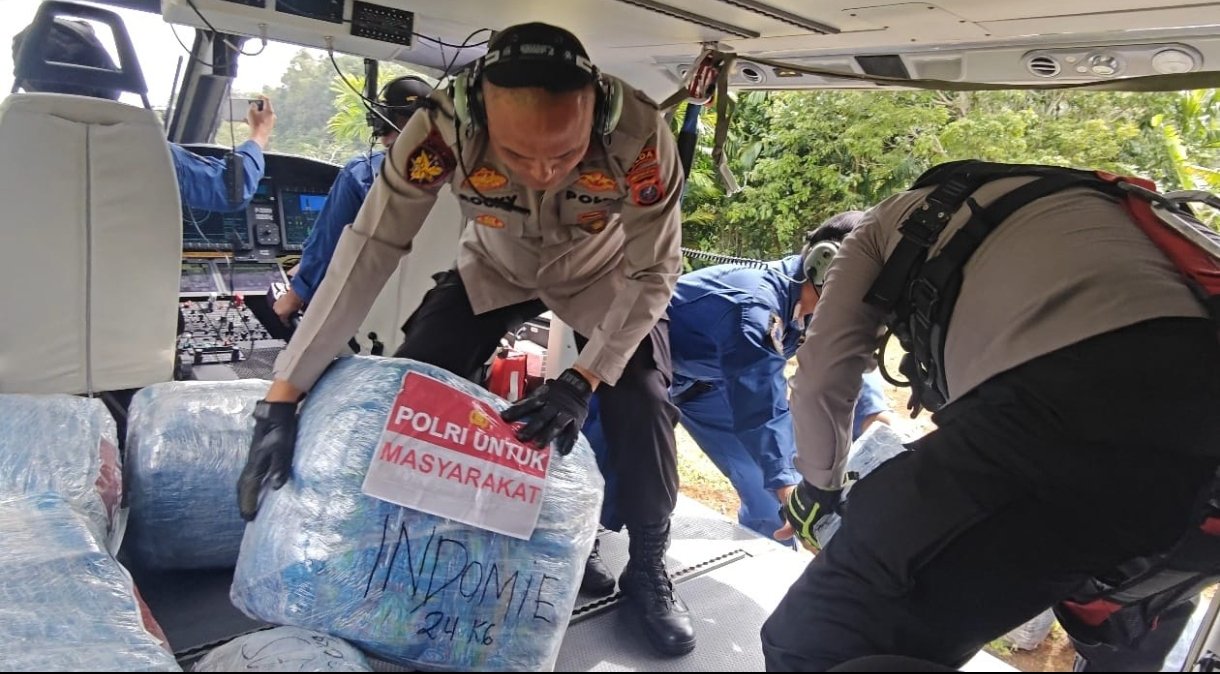 Kombes Pol Yudhi Surya Markus Pinem, S.I.K., M.H., yang memimpin distribusi bantuan tersebut menyampaikan bahwa pengiriman melalui udara menjadi opsi yang paling memungkinkan mengingat kondisi lapangan saat ini masih belum dapat dilalui kendaraan.