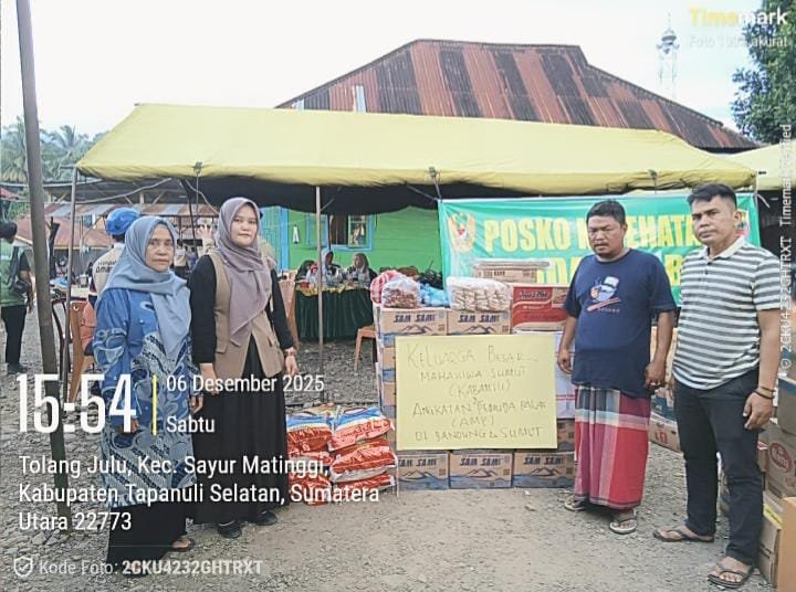 Tapanuli Selatan, 07 Desember 2026 Banjir bandang yang melanda sejumlah wilayah di Kabupaten Tapanuli Selatan menggerakkan aksi solidaritas dari berbagai elemen masyarakat. Dua organisasi pemuda, Angkatan Muda Padang Lawas (AMP) dan Keluarga Besar Mahasiswa Sumatera Utara (KABAMSU), turun langsung menyalurkan bantuan ke dua daerah terdampak: Desa Tolang Julu, Kecamatan Sayur Matinggi, dan Desa Garoga, Kecamatan Batang Toru.