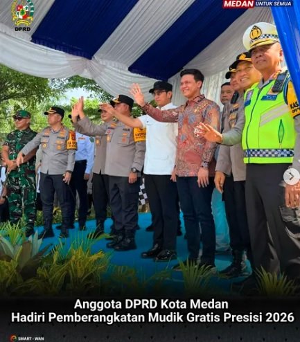 Ucapan selamat sampai tujuan dan bisa berkumpul dengan keluarga merayakan Hari Raya Idul Fitri 1447 Hijriah menjadi doa dan harapan Wali Kota Medan dan Kapolrestabes Medan saat melepas pemudik ke tujuan kampung halaman masing-masing.