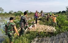 Jebolnya tanggul tersebut pun, langsung menjadi perhatian pihak Koramil Kedungpring dengan mengerahkan puluhan personilnya.