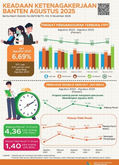 Penurunan tersebut menunjukkan adanya dinamika pasar tenaga kerja yang perlu diwaspadai, terutama di tengah ketidakpastian ekonomi global. Demikian data dari BPS Banten.