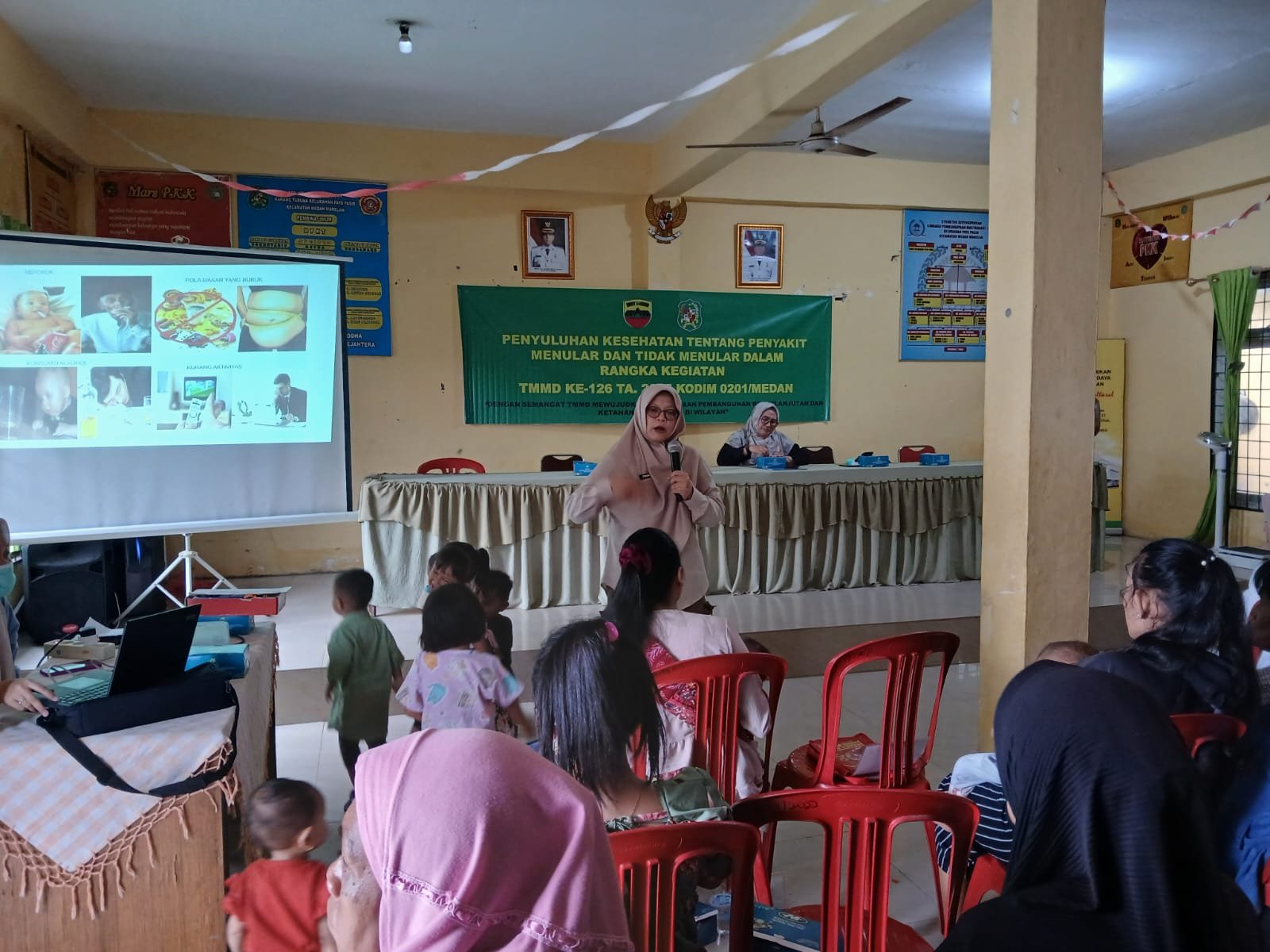 TMMD ke-126 Kodim 0201/Medan memberikan edukasi penting mengenai penyakit menular dan tidak menular (PTM) di Aula Kelurahan Paya Pasir, Kecamatan Medan Marelan, Kamis (16/10/2025). Penyuluhan ini bertujuan untuk membekali warga dengan pengetahuan preventif agar terhindar dari penyakit kronis.