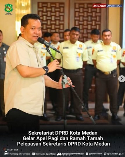 Medan— Halaman kantor Sekretariat DPRD Kota Medan pagi itu tidak hanya diisi barisan rapi dan suara komando, tetapi juga nuansa yang sedikit berbeda—lebih hangat, dan diam-diam lebih emosional. Apel pagi yang biasanya berjalan formal, kali ini sekaligus menjadi ajang ramah tamah dan pelepasan, Selasa (10/03/2026).