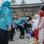 Ketua TP PKK Kahiyan Ayu menabur 15.000 benih ikan nila di Desa Pematangsera i, Kecamatan Tanjungpura, Kabupaten Langkat