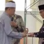 Kepala KUA Batang Angkola Serahkan Cenderamata kepada Pengurus BKM BKM Masjid Baiturrahman di Desa Janjimanaon dalam kegiatan Safari Ramadan