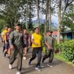 Satgas Pamtas Yonif 641/Bru Pos Kelila beserta Polsek dan Koramil Membramo Tengah setelah melaksanakan kegiatan olah raga bersama dilanjutka