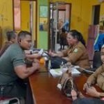 Babinsa Koramil 0201-03/MD Serda Suradi melaksanakan komunikasi sosial (Komsos) bersama aparatur kelurahan di Kantor Lurah