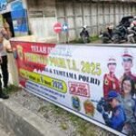 Pemasangan Spanduk Sosialisasi Penerimaan Anggota Polri Terpadu TA 2025 di Laguboti Personel Polsek Laguboti Polres Toba