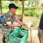 Berikan Motivasi, Serka Aris Komsos dengan Peternak Lele di Wilayah Binaan