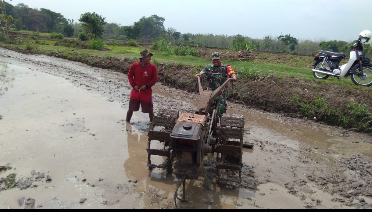 Babinsa Bantu Bajak Sawah, Persiapan Lahan Tanam Padi