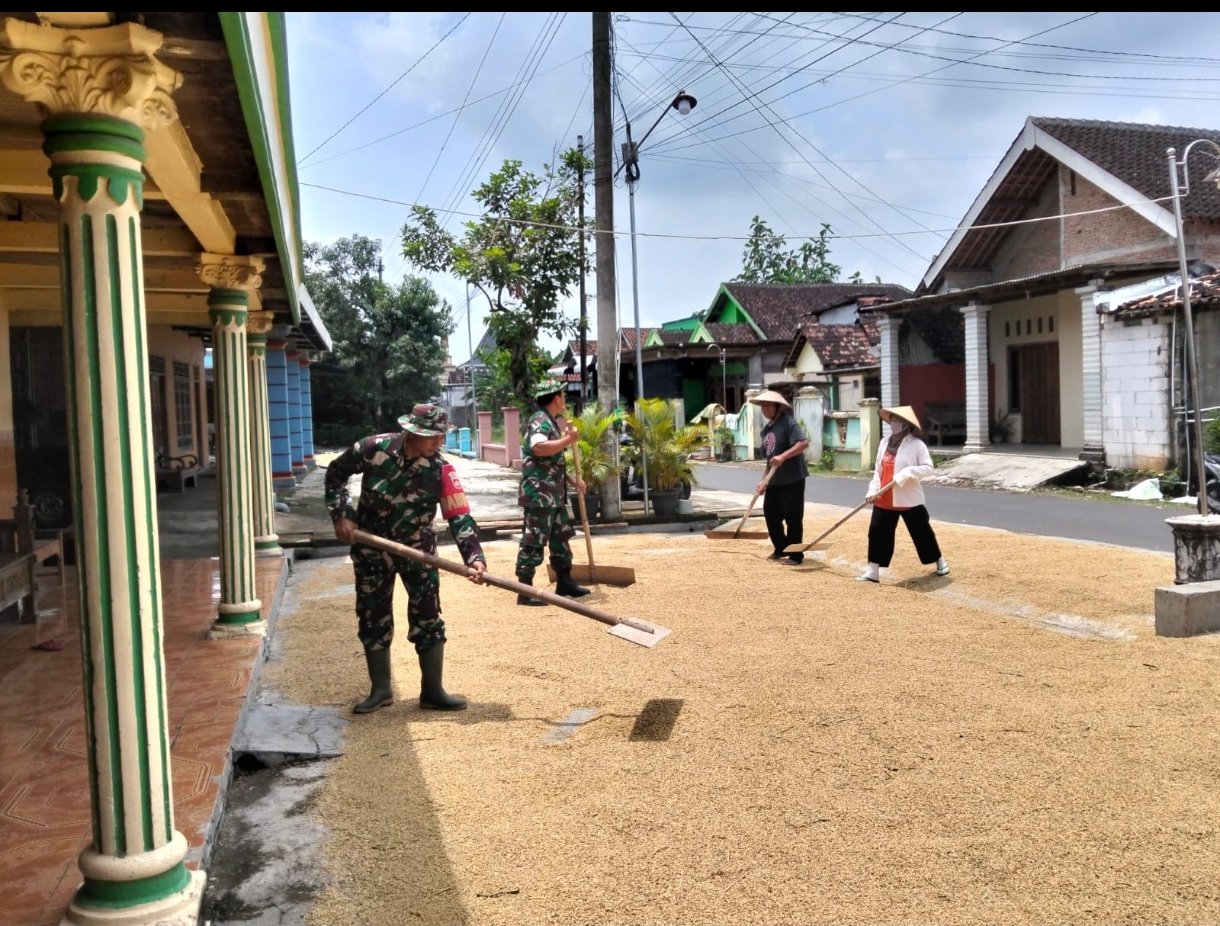 Babinsa Bantu Jemur Padi, Wujudkan Gabah Berkualitas