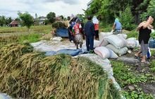 Bentuk dukungan Babinsa sebagai aparat kewilayahan dalam meningkatkan ketahanan pangan di wilayah binaannya, Peltu I. Simatupang Babinsa Koramil 0201-06/MS Kodim 0201/Medan ikut serta terjun langsung ke sawah bantu para petani memanen padi dengan menggunakan alat mesin pemotong padi sistem jenis Combain.