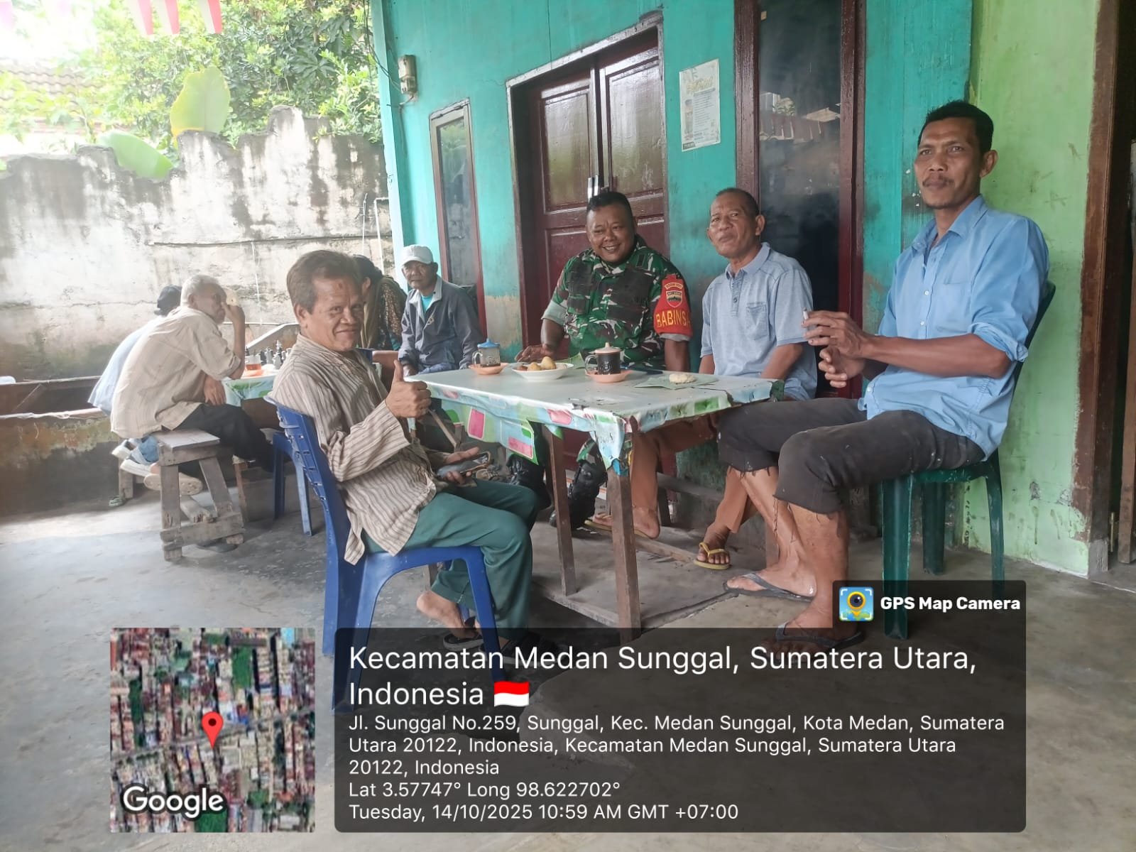 Komsos kali ini juga dimanfaatkan Babinsa untuk menjalin silaturahmi sambil memperoleh informasi serta memahami perkembangan situasi terkini di wilayah binaannya. Peltu I. Simatupang tampak berbincang santai dengan tokoh masyarakat Bapak Doni dan beberapa warga lainnya yang sedang menikmati kopi di warung tersebut.