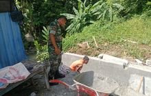 Selain mengawasi, Babinsa juga ikut mendukung pengerjaan pembangunan secara fisik. Hal itu terlihat dari keterlibatan langsung Kopka Lalu Edy dalam membantu proses pengecoran drainase bersama warga.