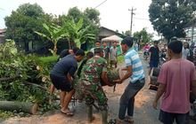 Babinsa menuju lokasi dan mengajak warga yang ada di sana untuk membersihkan pohon mahoni tersebut dari badan jalan dengan menggunakan alat seperti parang dan mesin pemotong agar lebih mudah dibersihkan dan mengangkat ranting-ranting pohonnya.