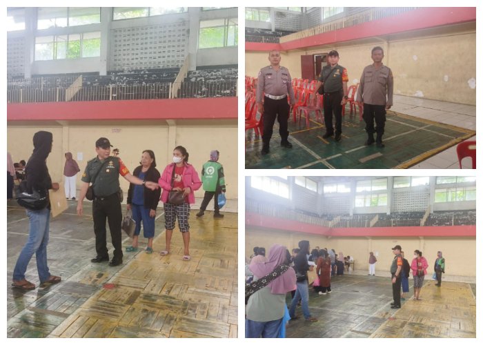 Foto Caption: Babinsa Serka Umar Hasibuan memonitor proses penyaluran BLTS Kesra di Gedung Gelanggang Remaja Medan untuk memastikan bantuan tersalurkan tepat sasaran.