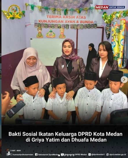 Di tempat ini, Ikatan Keluarga DPRD Kota Medan melaksanakan kegiatan bakti sosial sebagai bentuk kepedulian terhadap anak-anak yatim. Sebuah kegiatan yang terasa sederhana, namun selalu memiliki makna yang tidak sederhana.