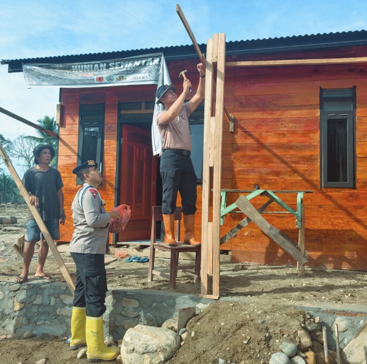 Pada sisi lain, personel Brimob juga membantu pembangunan teras depan huntara Desa Garoga sebagai bagian dari dukungan terhadap percepatan penyediaan fasilitas layak bagi warga. Meski masih dalam tahap pengerjaan, kegiatan ini diharapkan dapat segera diselesaikan sesuai rencana.