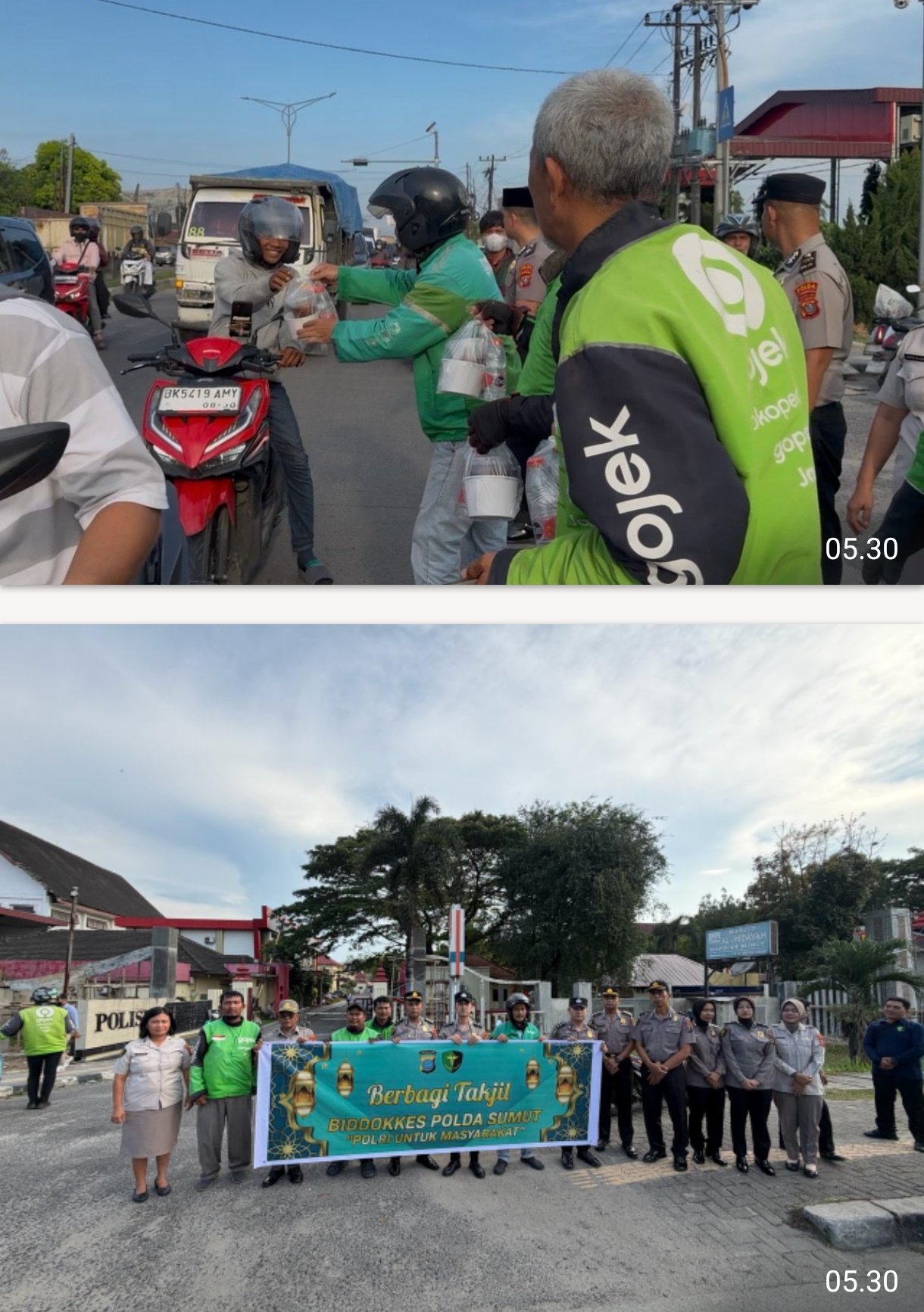 Pembagian takjil ini melibatkan personel Bidang Kedokteran dan Kesehatan (Biddokkes) Polda Sumut bersama para driver ojek online. Kegiatan berlangsung tertib dan disambut antusias oleh masyarakat yang menerima takjil untuk berbuka puasa.