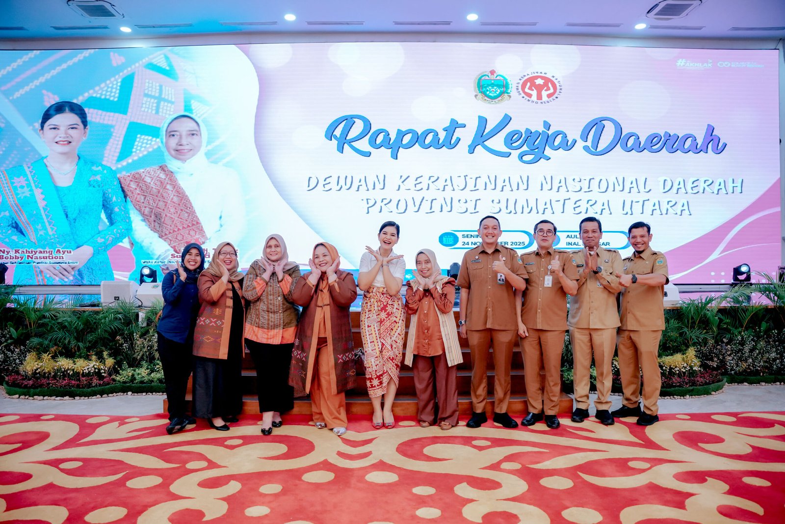 Rakorda turut dihadiri Wakil Ketua Dekranasda Sumut Titek Sugiharti, pimpinan OPD Sumut dan kabupaten/kota, serta Ketua dan pengurus Dekranasda se-Sumut.
