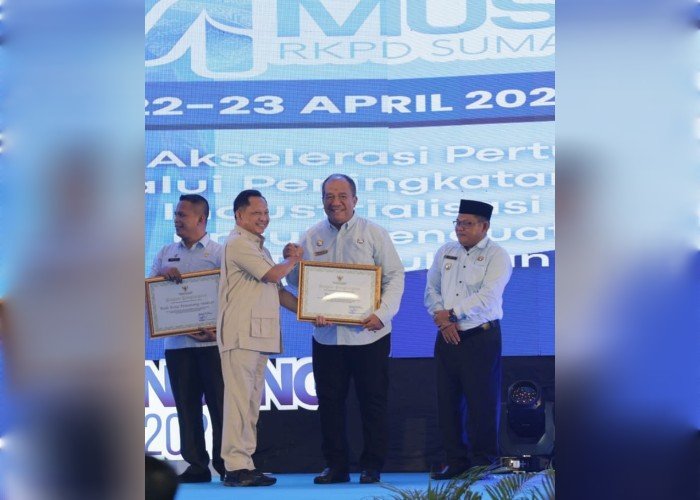 matabangsa.com – Asahan : Bupati Asahan, Taufik Zainal Abidin Siregar SSos MSi menerima piagam penghargaan dari Menteri Dalam Negeri (Mendagri) Muhammad Tito Karnavian atas kontribusi aktif Pemerintah Kabupaten Asahan dalam memberikan bantuan keuangan kepada Pemerintah Kabupaten Bireuen, Provinsi Aceh, untuk penanggulangan dan pemulihan pasca bencana alam tahun 2026. Penghargaan tersebut diserahkan dalam rangkaian Pembukaan Musyawarah Perencanaan Pembangunan (Musrenbang) Rencana Kerja Pemerintah Daerah (RKPD) Provinsi Sumatera Utara Tahun 2027 yang digelar di Aula Hotel Santika Premiere Dyandra, Medan, Rabu (22/04/2026), yang secara resmi dibuka oleh Menteri Dalam Negeri Muhammad Tito Karnavian yang dihadiri oleh Anggota DPR RI, Gubernur Sumatera Utara, Wakil Gubernur Sumatera Utara, Forkopimda Provinsi Sumatera Utara, para Kepala Daerah se-Kabupaten/Kota, OPD di Lingkungan Provinsi Sumatera Utara serta tamu undangan lainnya.