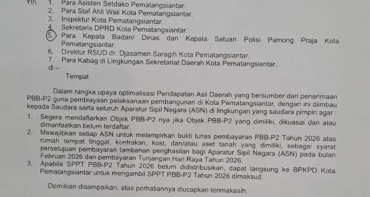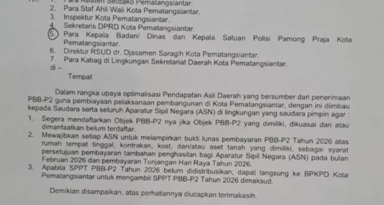 Soal Pelunasan PBB Syarat Pencairan THR Walikota Pematangsiantar Didesak Copot Kepala BPKAD