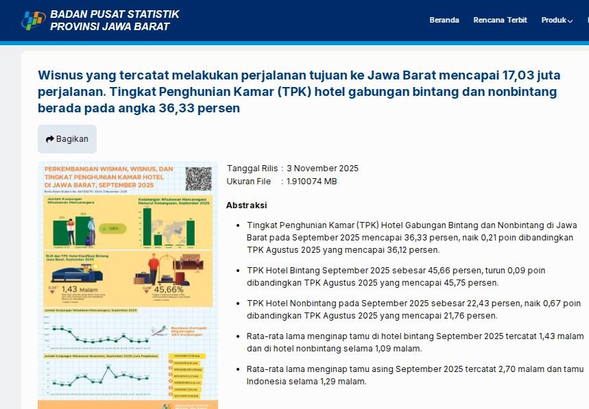 Tags: TPK Hotel, Pariwisata Jawa Barat, Data Pariwisata, Hunian Hotel, Wisata 2025