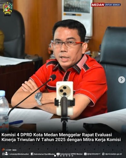 Medan— Di awal tahun yang masih terasa baru, Komisi 4 DPRD Kota Medan kembali membuka lembar evaluasi terhadap kinerja akhir tahun sebelumnya. Rapat Evaluasi Kinerja Triwulan IV Tahun 2025 digelar sebagai bagian dari fungsi pengawasan, sebuah agenda yang secara sederhana dapat dimaknai sebagai upaya memastikan bahwa rencana, anggaran, dan pelaksanaan benar-benar berjalan seirama—atau setidaknya mendekati demikian.