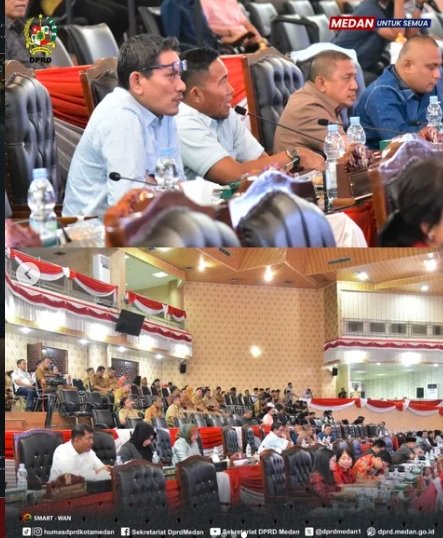 Rapat yang berlangsung di Ruang Rapat Paripurna DPRD Kota Medan ini dibuka oleh Ketua DPRD Kota Medan, Drs. Wong Chun Sen, M.Pd.B., didampingi Wakil Ketua, H. Rajudin Sagala, S.Pd.I., dan H. Zulkarnaen, S.K.M., serta dihadiri Anggota-Anggota DPRD Kota Medan, Sekretaris Daerah Kota Medan, Kepala OPD di lingkungan Pemerintah Kota Medan, serta Camat se-Kota Medan.(***)