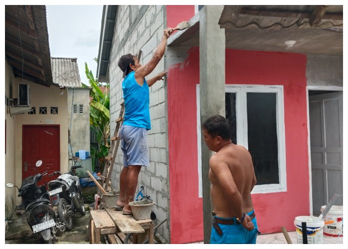 Sementara itu, para tetangga ikut membantu dengan menyediakan air dan bahan tambahan cat.