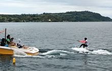 BALIGE – Pertandingan cabang olahraga Ski Air Nomor Wakesurf Putri pada PON XXI Aceh-Sumut yang berlangsung di Lumban Silintong Ujung, Cafe Terapung Timothy, menunjukkan dominasi atlet dari Jawa Barat, Rabu (18/9/2024).