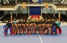Pertandingan cabor hockey indoor (putra dan putri) mengusung sistem setengah kompetisi. Dua tim yang berada di peringkat teratas klasemen bakal berhadapan di laga final. (PB PON XXI SUMUT/Ahmad Rizal)