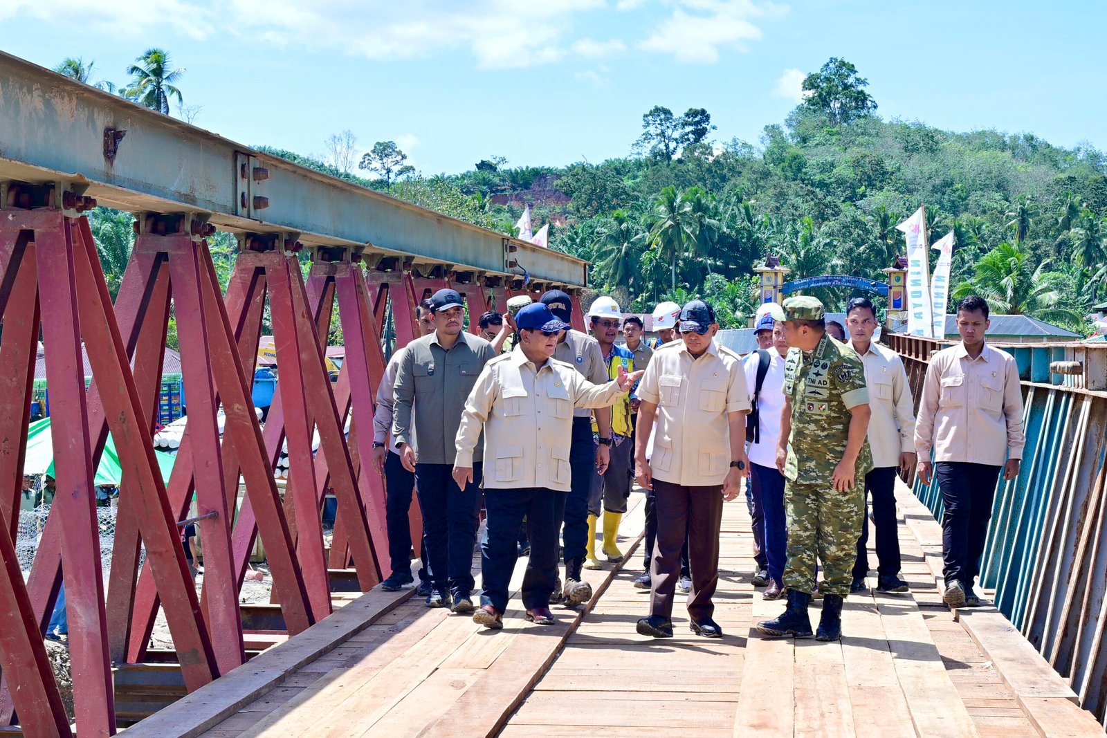 Rabu (31/12/2025), Prabowo melihat langsung proses pembangunan jembatan Bailey yang melintasi Sungai Garoga, sekaligus perbatasan antara Kabupaten Tapanuli Selatan dengan Tapanuli Tengah. Jalan lintas Sumatera (Jalinsum) pantai barat tersebut, beberapa waktu lalu sudah bisa dilewati, dengan pengalihan sementara jalur di samping jembatan yang sedang dibangun.