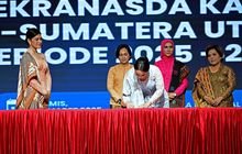 Sebelumnya Kahiyang Ayu melantik serta menyematkan pin kepada Katua TP PKK, Ketua Tim Pembina Posyandu dan Ketua Dekranasda Kabupaten/Kota se-Sumut Periode 2025-2030.
