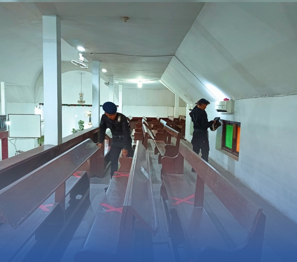 Setibanya di lokasi, personel terlebih dahulu berkoordinasi dengan pihak pengamanan wilayah sebelum melaksanakan sterilisasi secara menyeluruh. Pemeriksaan dilakukan pada berbagai area, mulai dari mimbar, ruang ibadah, kursi, sound system, hingga fasilitas pendukung seperti toilet, pot bunga, tempat sampah, serta area sekitar gereja.