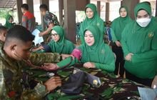 HUT Kostrad, Danbrigif 9/DY/2 dan Ketua Pesit Cabang XXII Brigif 9 Kostrad Bersama Prajurit Donor Darah
