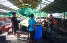 Ciptakan keakraban babinsa dengan warga binaan, Babinsa Koramil 0201-14/PB Koptu Nanang kaspri bersama pekerja ternak lembu melaksanakan Komsos d disalah satu kandang ternak lembu milik Bapak Reza Desa laumulgap kec namorambe Kab. Deli serdang. Sabtu ( 06/07/24)
