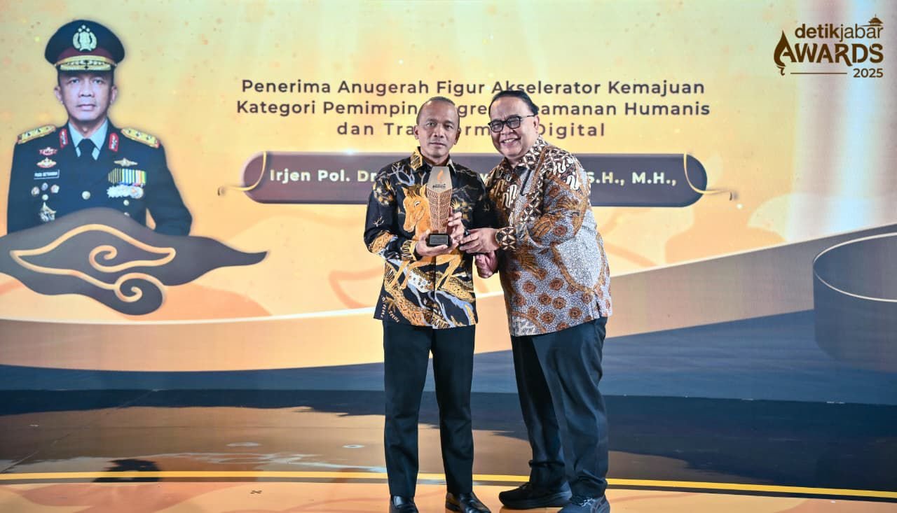 Jakarta, 13 Desember 2025 – Kapolda Jawa Barat Irjen Pol. Rudi Setiawan meraih trofi Pemimpin Progresif Keamanan Humanis dan Transformasi Digital dalam ajang detikJabar Awards 2025. Penghargaan tersebut dinilai mencerminkan adanya perubahan pendekatan kepolisian yang lebih adaptif, terbuka, dan berorientasi pada pelayanan publik.