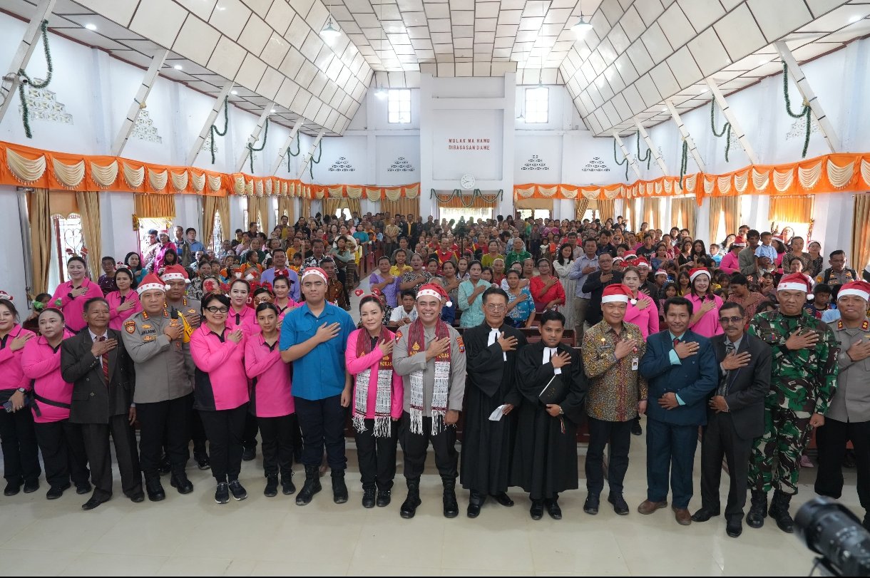 “Perayaan Natal ini bukan sekadar ibadah keagamaan, tetapi juga momentum memperkuat solidaritas, memberikan penguatan moril, dan memastikan negara hadir di tengah masyarakat yang terdampak bencana,” ujar AKBP Arthur Sameaputty.