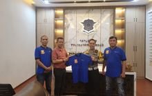 Dalam audiensi itu, Ketua Pewarta Polrestabes Medan, Chairum Lubis SH juga memberikan baju kaos kebesaran Pewarta yang berwarna biru dengan dipadu warna lis hitam di kerah dan lengan bajunya.