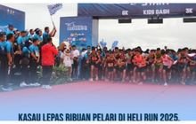 Kepala Staf Angkatan Udara (Kasau) Marsekal TNI M. Tonny Harjono, S.E., M.M., didampingi Ketua Umum PIA Ardhya Garini, Ny. Isa M. Tonny Harjono, melepas ribuan peserta dalam ajang Heli Run 2025 di Skadron Udara 6, Lanud Atang Sendjaja, Bogor, Minggu 23 Februari 2025.