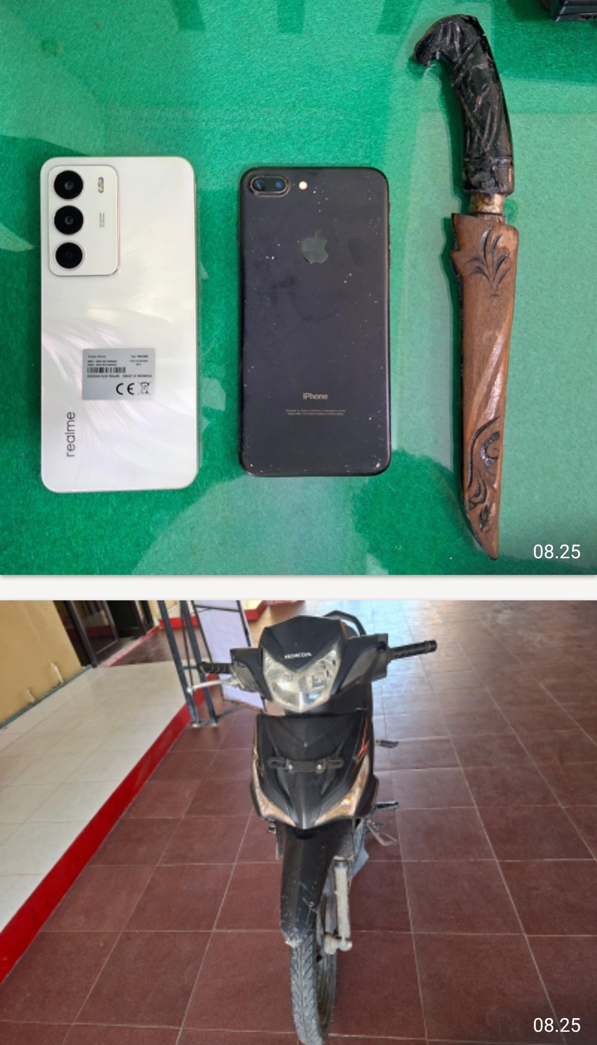 Saat dilakukan penangkapan, petugas menemukan ponsel Realme milik korban pada pelaku. Selain itu, MS juga kedapatan membawa sebilah senjata tajam jenis belati yang diselipkan di pinggangnya.