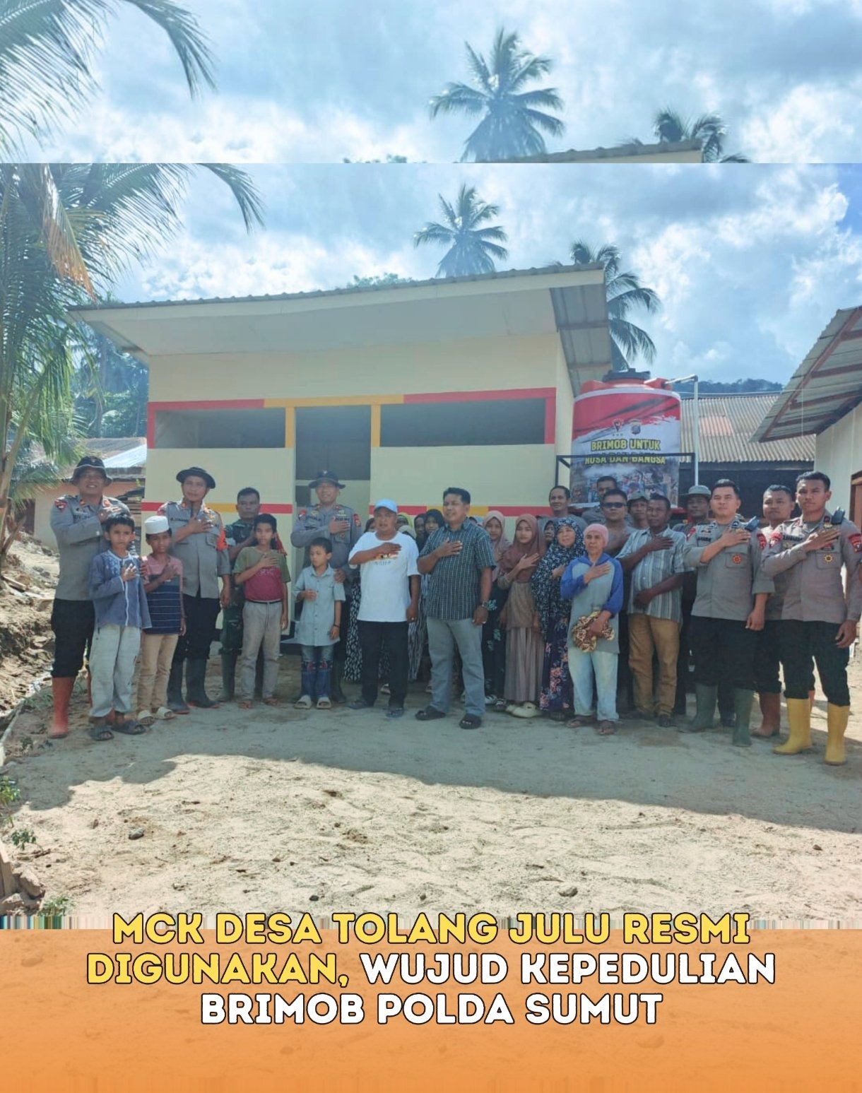 matabangsa.com-Tapanuli Selatan: Komandan Batalyon C Satuan Brimob Polda Sumatera Utara, Kompol Zaenal Muhlisin, meresmikan fasilitas MCK dan sumur air bersih di Desa Tolang Julu, Kecamatan Sayur Matinggi, Kabupaten Tapanuli Selatan, pada Jumat (16/01/2026) sore. Kegiatan tersebut dilaksanakan bersama Kepala Desa Tolang Julu dan masyarakat setempat.