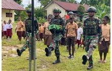 Yalimo – Membangun rasa kebersamaan dan kepedulian terhadap usia dini, personel Pos Kout Elelim mengajarkan PBB (Peraturan baris berbaris) dan cara mengibarkan Bendera pada saat upacara Hari senin kepada siswa dan siswi SDN 1 Elelim, Distrik Elelim, Kabupaten Yalimo, Provinsi Papua Pegunungan, (08/02/2025)