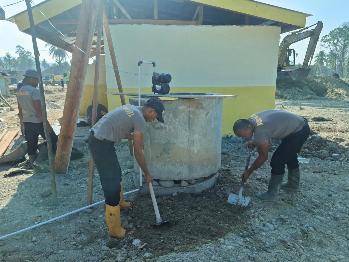 Selain membantu pemulihan rumah warga, personel Brimob juga melaksanakan renovasi sumur Masjid Taqwa Muhammadiyah Garoga. Upaya ini dilakukan agar masyarakat dapat kembali beribadah dan memenuhi kebutuhan air bersih dengan aman dan nyaman.