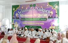 Sementara itu, Ketua Komite MTsN 1 Medan, Hj. Emy Elia Mega Saragih, S.Ag, SH, MH, CM, yang akrab disapa Mega, menyampaikan ucapan terima kasih kepada pihak madrasah atas penyelenggaraan kegiatan khataman Al-Qur’an ini. “Semoga ananda sukses dalam ujian dan melanjutkan ke jenjang yang lebih tinggi, doakan semua gurumu agar sehat selalu,” ujar Mega.