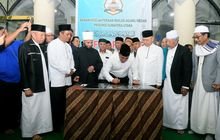 Usai memberikan sambutan, Gubernur kemudian menandatangai prasasti Gedung Masjid Agung Medan, sekaligus peluncuran penggunaan masjid sebagai tempat beribadah. (H13/dave)