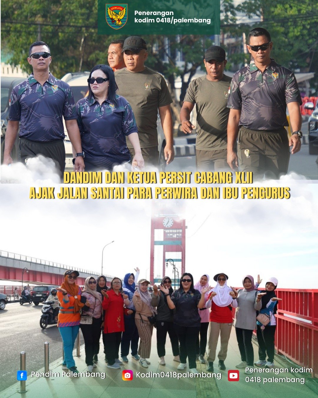 Tags: #Kodim0418Palembang, #TNIAD, #JalanSantaiKodim, #AmperaPalembang, #SoliditasPrajurit, #PersitKCK, #OlahragaAkhirPekan, #ErikNovianto, #SungaiMusi
