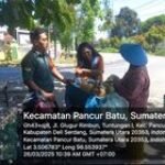 Babinsa Koramil 0201-07/MT Serma Suratno melaksanakan Komunikasi Sosial (Komsos) dengan warga binaan dengan salah satu warga Kelurahan Tanju